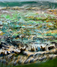 À travers l’acrylique et la résine époxy, chaque œuvre propose une vision abstraite de paysage, faite de transparences, de mouvements et de superpositions.
