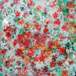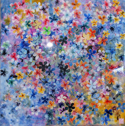 Telles des bulles de bonheur, mes fleurs éclatent sur la toile et semblent vouloir s'en échapper, offrant un sentiment joyeux qui invite au rêve et à l'évasion.
